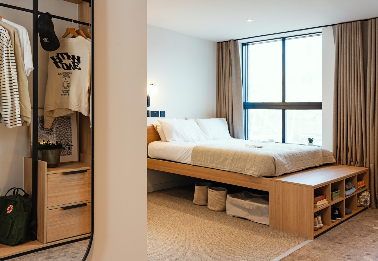 We’re based in the middle of Manchester’s action, with First Street and Oxford Road either side of us. Just a quick walk to the arts centre/cinema HOME, the O2 Ritz, and both of Manchester’s main universities, you’ll be in a spot that is bound to keep you busy and excited.